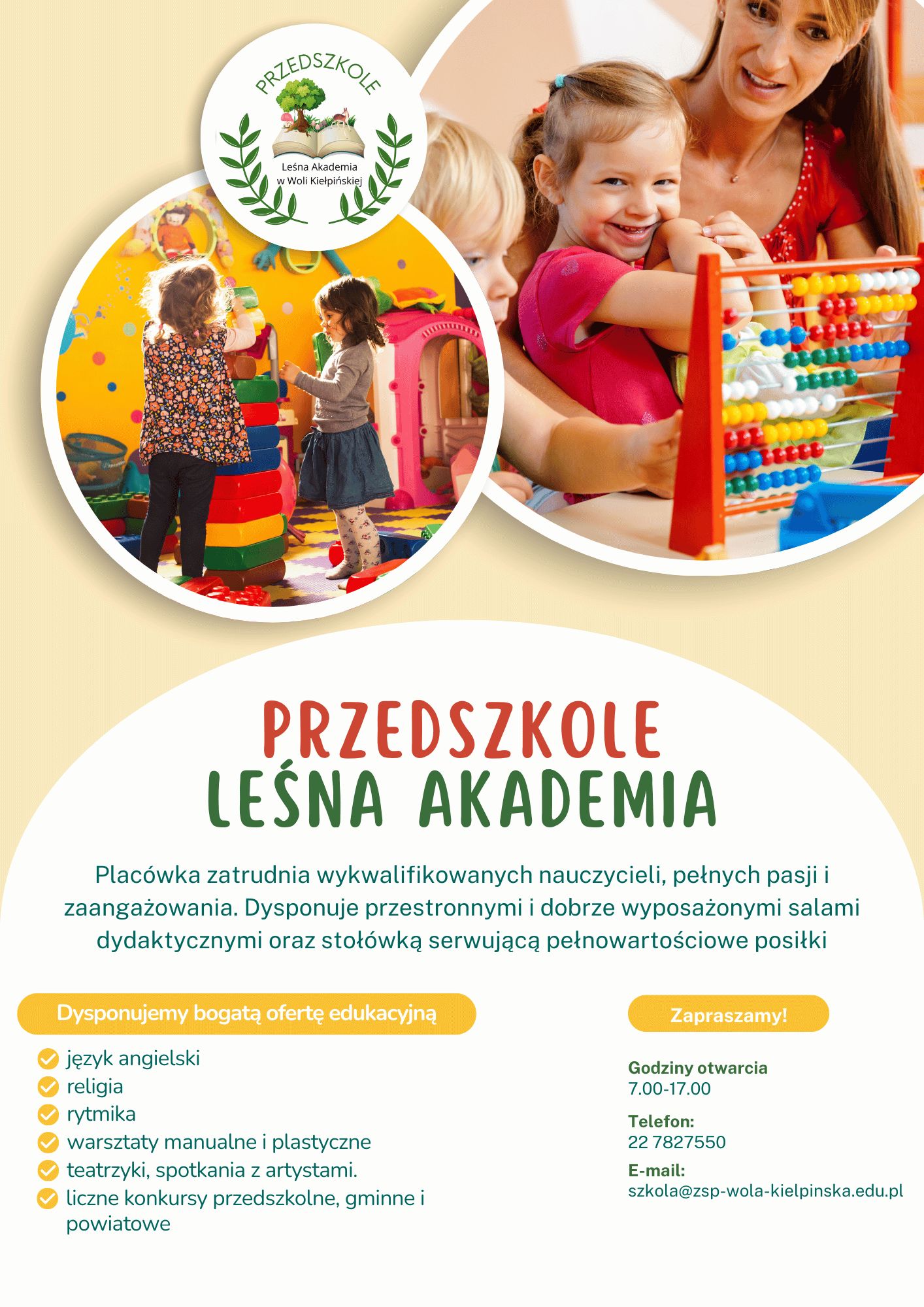 Oferta edukacyjna: Przedszkole Leśna Akademia w Zespole Szkolno-Przedszkolnym w Woli Kiełpińskiej