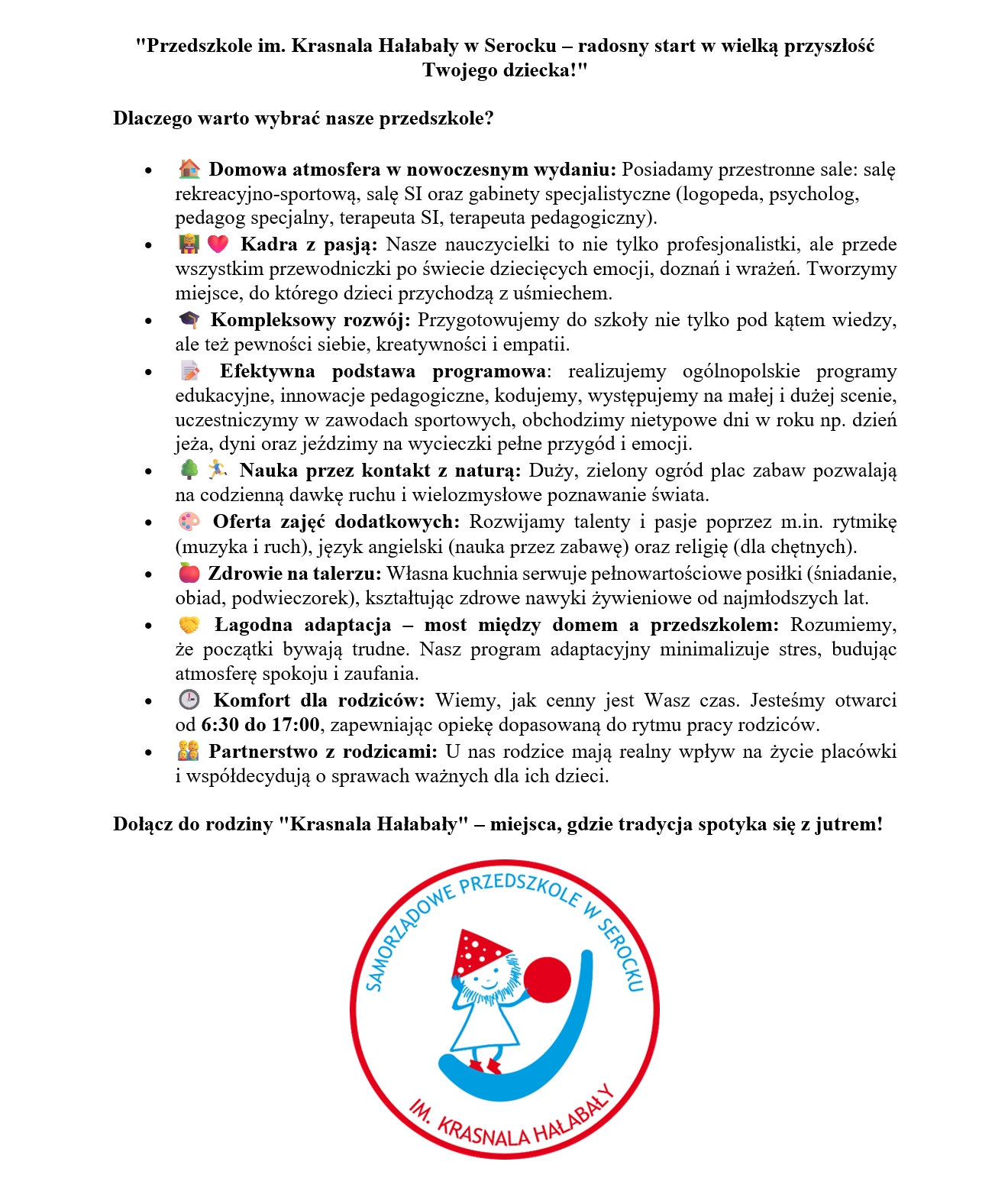 Oferta edukacyjna: Samorządowe Przedszkole im. Krasnala Hałabały w Serocku