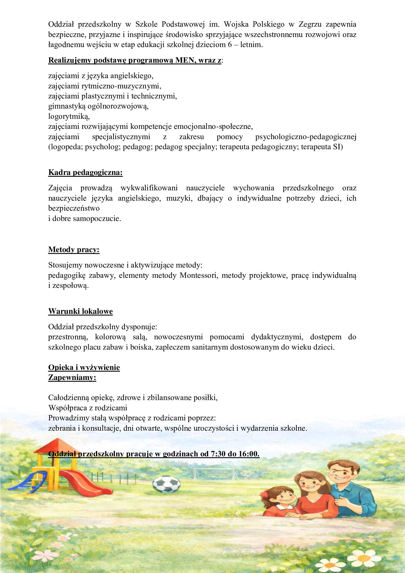 Oferta edukacyjna: Oddział Przedszkolny w Szkole Podstawowej im. Wojska Polskiego w Zegrzu